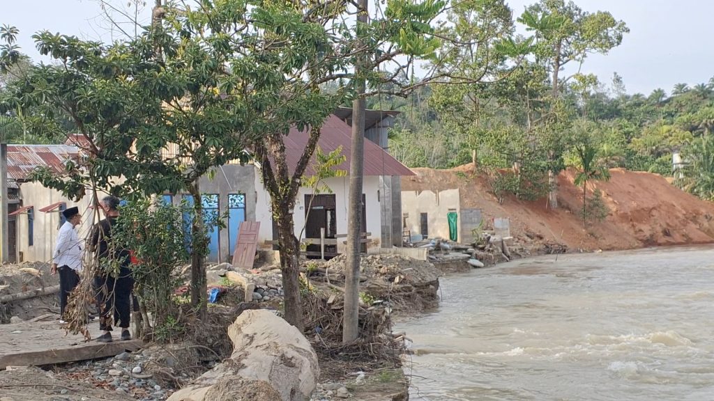 Pemandangan itu membuat siapa pun yang datang terdiam tak percaya bahwa ini adalah desa yang dulunya hidup dan produktif. “Rumah saya hancur disapu banjir. Rumah anak saya juga dua unit,” ujar seorang warga dengan suara pelan namun sarat beban.