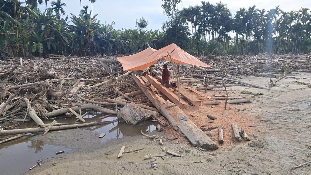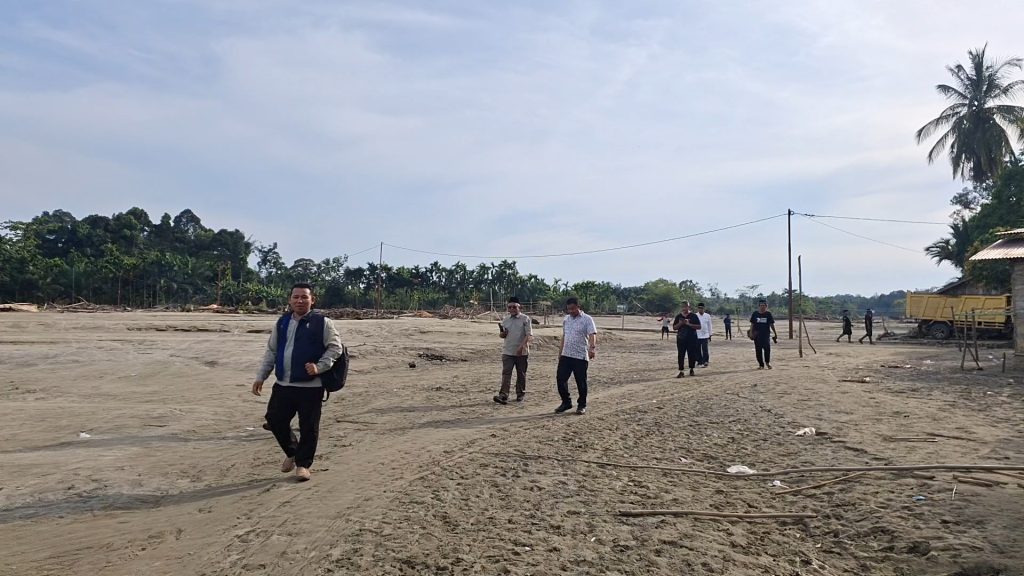 Sisa-sisa bencana masih jelas terlihat. Bongkahan kayu besar bertumpuk di halaman rumah, di sudut jalan, bahkan di tengah permukiman. Sawah-sawah yang dulu menjadi sumber penghidupan kini rata oleh lumpur, keras dan kering, kehilangan jejak kesuburannya.