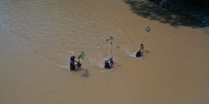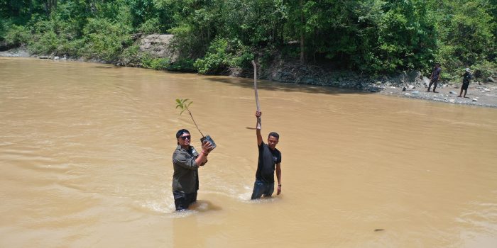 Sebagai bentuk penyelamatan sekaligus harapan, para peserta aksi tidak hanya menyuarakan protes, mereka juga melakukan penanaman puluhan pohon di sepanjang bantaran Sungai Jalin.