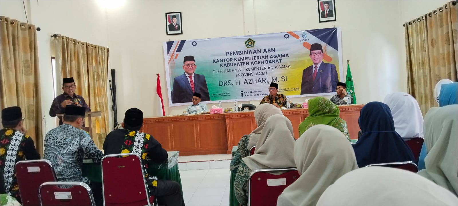 Aceh Barat (Meulabohnews) – Kepala Kantor Wilayah Kementerian Agama (Kakanwil Kemenag) Provinsi Aceh, Drs. H. Azhari, M.Si, melaksanakan pembinaan Aparatur Sipil Negara (ASN) di lingkungan Kantor Kementerian Agama Kabupaten Aceh Barat, Rabu (22/4/2026).