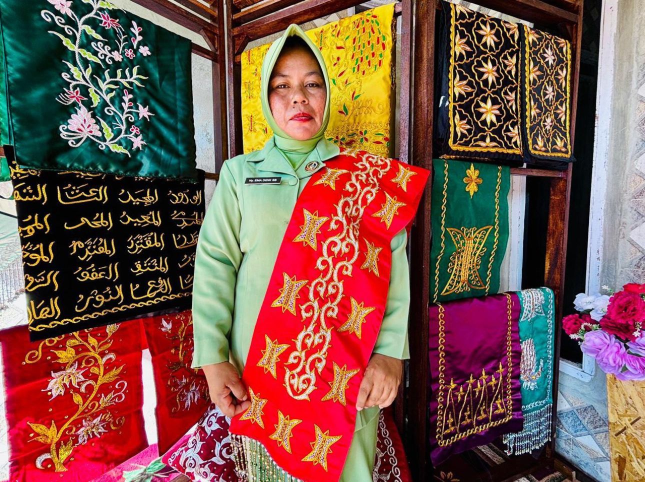 Aceh Barat (Meulabohnews) – Kerajinan kasab Aceh merupakan salah satu warisan budaya daerah yang memiliki nilai seni tinggi sekaligus bernilai ekonomi. Di Aceh Barat, kerajinan tradisional ini terus dilestarikan oleh para pengrajin lokal, salah satunya melalui usaha yang dirintis sejak tahun 2000 oleh Ny. Ema Mutiara Deka, yang merupakan anggota Persit Kartika Chandra Kirana Cabang XXVIII Dim 0105 Koorcab Rem 012 PD Iskandar Muda.