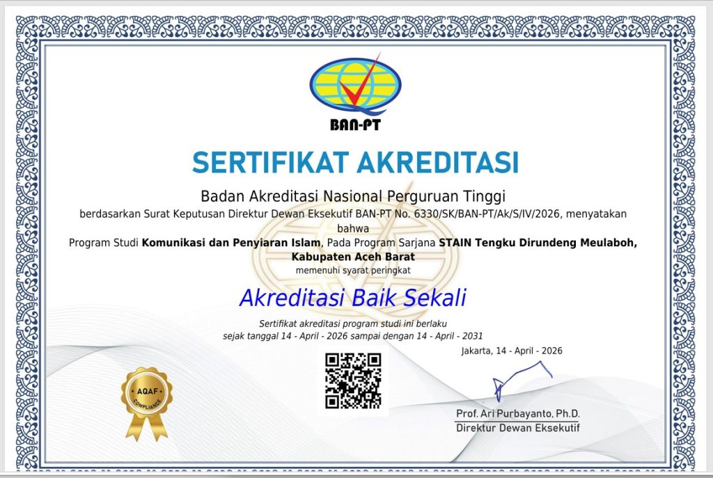 Aceh Barat (Meulabohnews.com) – Program Studi Komunikasi dan Penyiaran (KPI) Islam Sekolah Tinggi Agama Islam Negeri (STAIN) Teungku Dirundeng Meulaboh meraih akreditasi “Baik Sekali” dari Badan Akreditasi Nasional Perguruan Tinggi (BAN-PT).