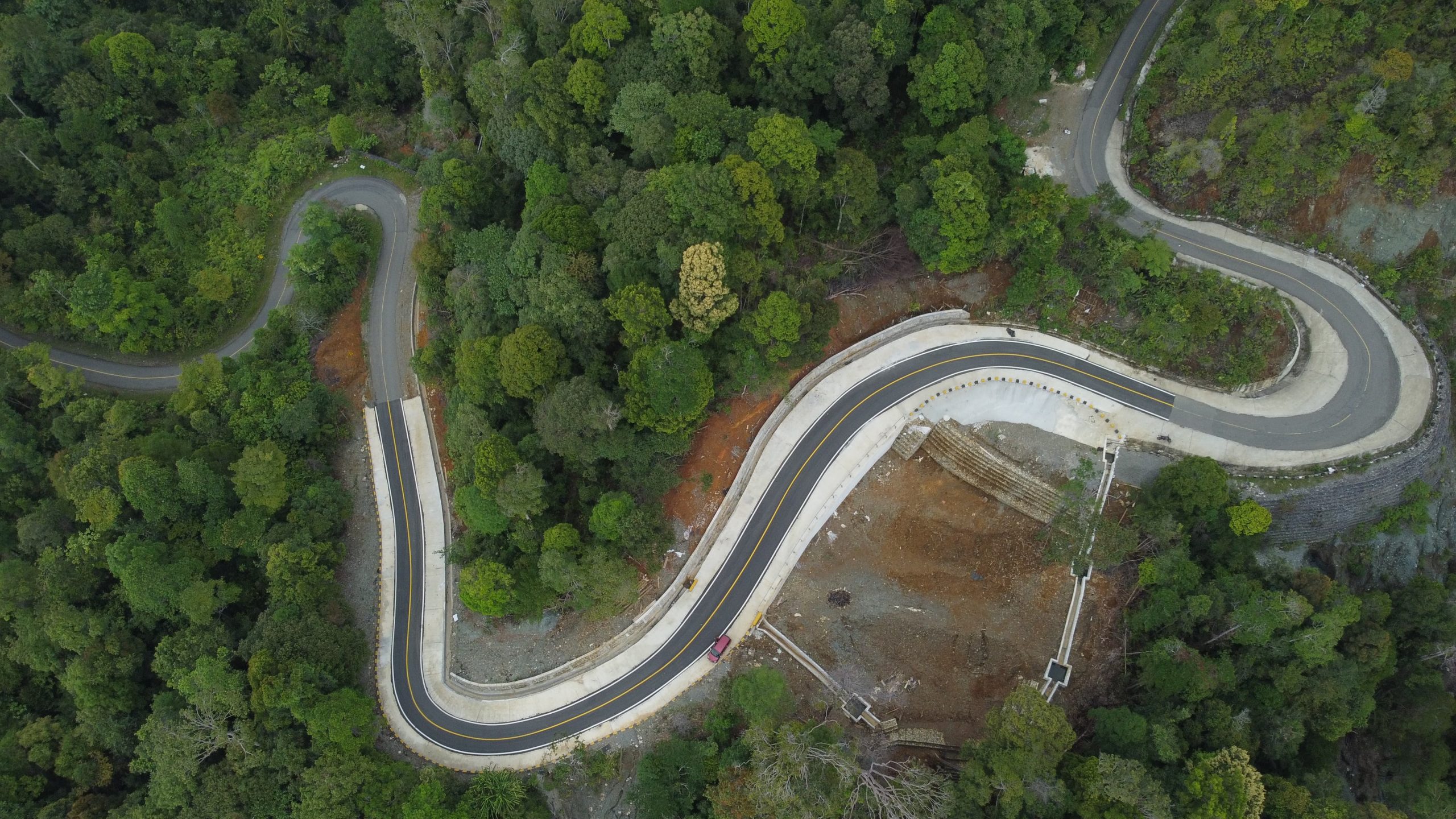 Nagan Raya (Meulabohnews) – Suasana jalan lintas Aceh Tengah – Nagan Raya dari udara di Desa Blang Neuang, Kecamatan Beutong, Nagan Raya, Sabtu (13/3/2026). Hingga H -6 menuju lebaran Idulfitri 1447 Hijriah jalan lintas tengah tersebut masih sepi pemudik meski kondisi jalan sudah normal pasca banjir bandang menerjang Aceh akhir November 2025 lalu.(Meulabohnews/Yulham)