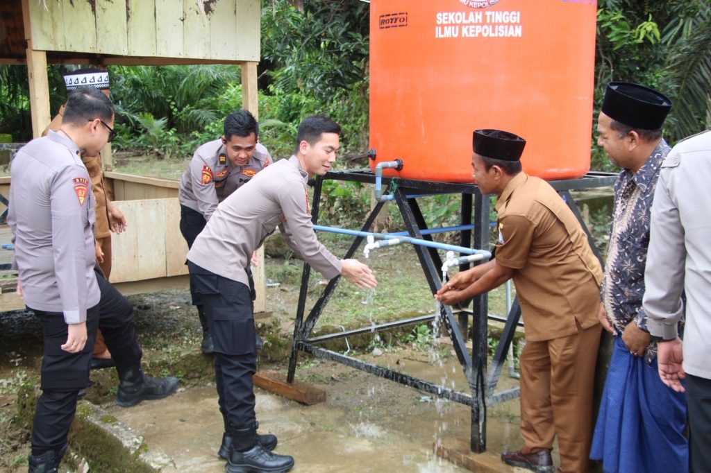 Kapolres Aceh Barat, AKBP Yhogi Hadisetiawan, S.I.K., M.I.K., dalam sambutannya menyampaikan apresiasi atas inisiatif dan dedikasi mahasiswa STIK PTIK Angkatan 83 yang telah menghadirkan solusi nyata bagi kebutuhan dasar masyarakat. Ia menegaskan bahwa ketersediaan air bersih merupakan kebutuhan vital yang sangat berpengaruh terhadap kesehatan dan kualitas hidup warga, terlebih dalam situasi pascabencana.