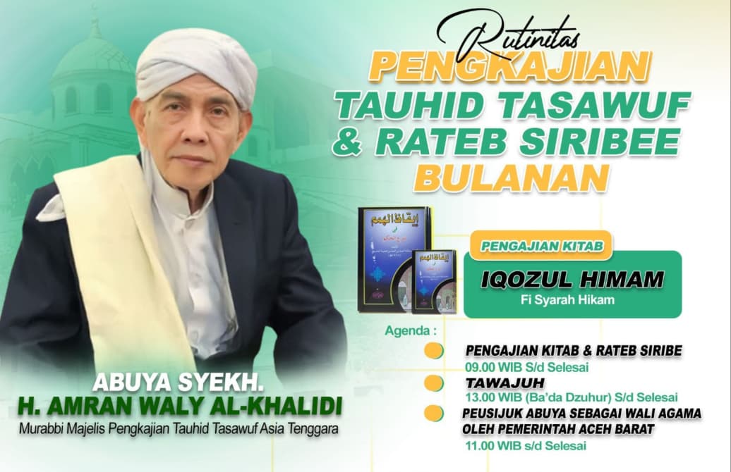 Usai peusijuk, rangkaian acara dilanjutkan dengan pengkajian Tauhid Tashawwuf serta Rateeb Siribee yang dipimpin langsung oleh Al Mukarram Abuya Syekh Haji Amran Waly Al-Khalidy.