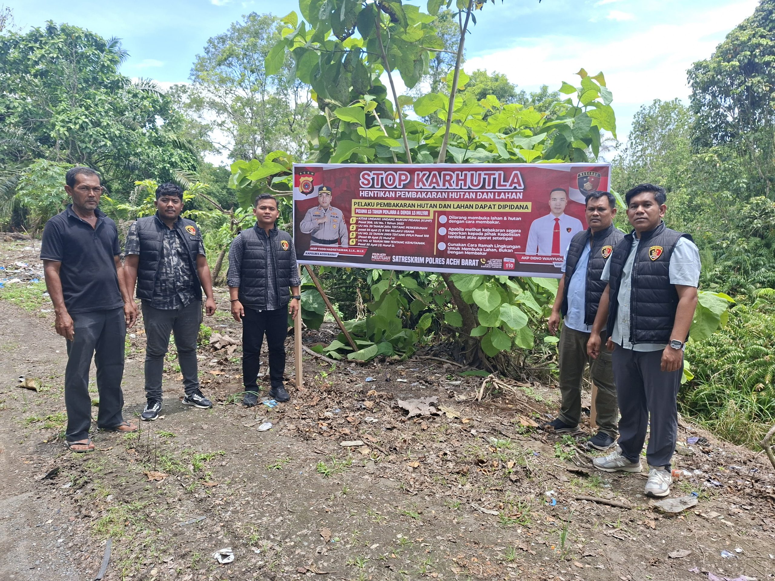 Kapolres Aceh Barat AKBP Yhogi Hadisetiawan, S.I.K., M.I.K., melalui Kasat Reskrim AKP Deno Wahyudi, Selasa (21/4/2026), mengatakan kegiatan tersebut merupakan tindak lanjut dari Surat Telegram Dirreskrimsus Polda Aceh Nomor: STR/03/IV/RES.5.5./2026 tanggal 16 April 2026 tentang imbauan penempatan spanduk pada titik-titik rawan karhutla.