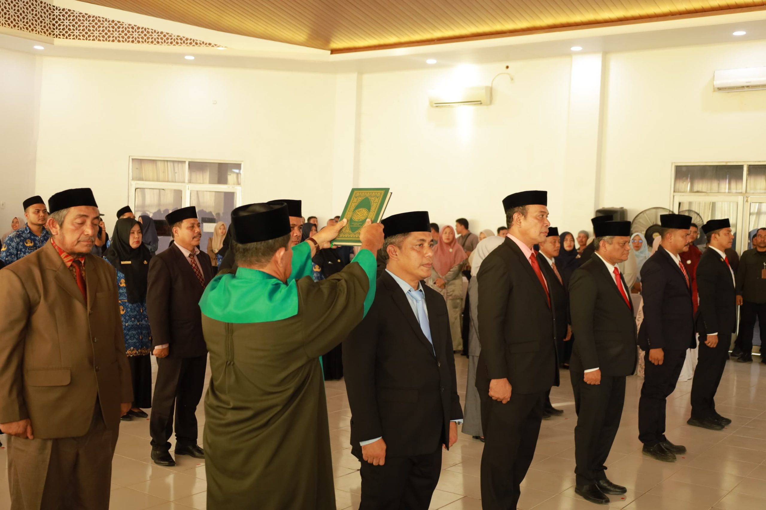 Aceh Barat (Meulabohnews) – Bupati Aceh Barat, Tarmizi, SP, MM, melantik dan mengambil sumpah jabatan sejumlah pejabat struktural dan fungsional di lingkungan Pemerintah Kabupaten Aceh Barat. Pelantikan berlangsung di Aula Bappeda Aceh Barat, Jumat 30/1/2026).